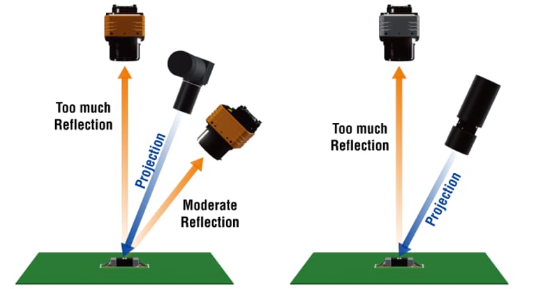 ART can avoid 3D measurement failures due to specular reflection on shiny solder surface, because side cameras compensate for 3D inspection when the top-down camera fails. For the same reason, there’s no blind spot in 3D measurement for the ART.